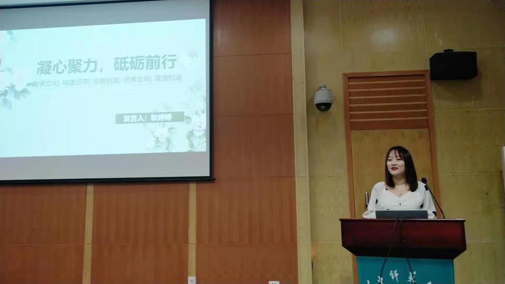 团委书记李哲立老师、研究生辅导员郝琴老师为2018届文学院研会成员颁发聘书及纪念品后,2019届文学院研究生会主席耿婷婷对研会未来一年的工作作出展望。她表示今年研会要继承传统,承前启后,开创新局面,同时将秉承博学、博爱、博雅的 “三博”精神,做好学生工作,完善规章制度,明确工作任务,营造友爱氛围,构建和谐队伍。