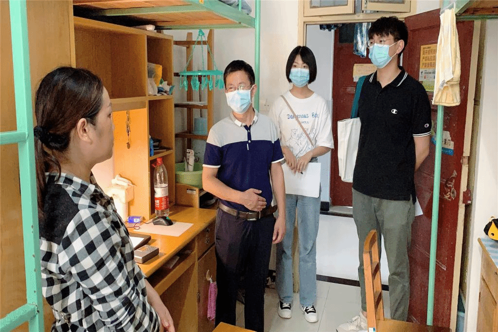 桂子赴会送秋而纷至,文院如约迎新共韶华。9月12日下午,文学院党委书记朱庆海与2020级文学院新生辅导员鲍思琦和马骁一同先后走访了东九栋女生宿舍楼和东十二栋男生宿舍楼。朱庆海书记和二位辅导员一同实地查访,关心2020级文学院新生的生活住宿情况,帮助大家解决新学期遇到的的困难和问题。此次走访活动给大一新生送去了温暖和关怀,也进一步地拉近了文院领导老师与新生之间的距离。