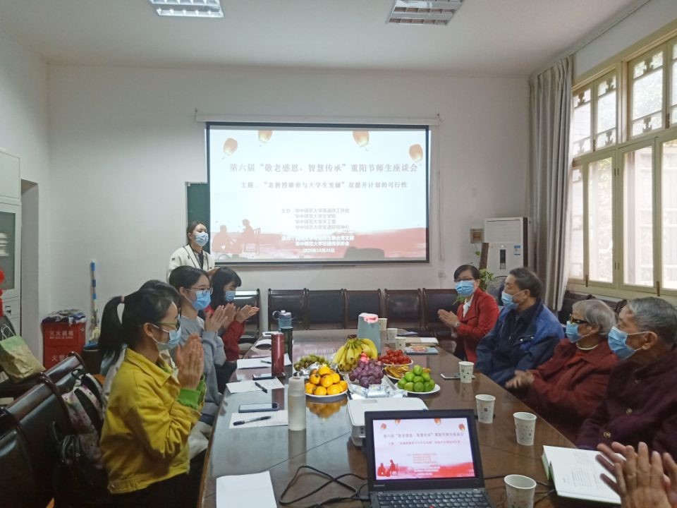 座谈会临近尾声,大家仍意犹未尽,朱书记、刘老师继续分享他们职业生涯中的趣事,只言片语间,老师们坚定的理想信念令人动容,生活智慧令人叹服。下午17时,重阳节师生座谈会在一片欢笑声里完满落幕。