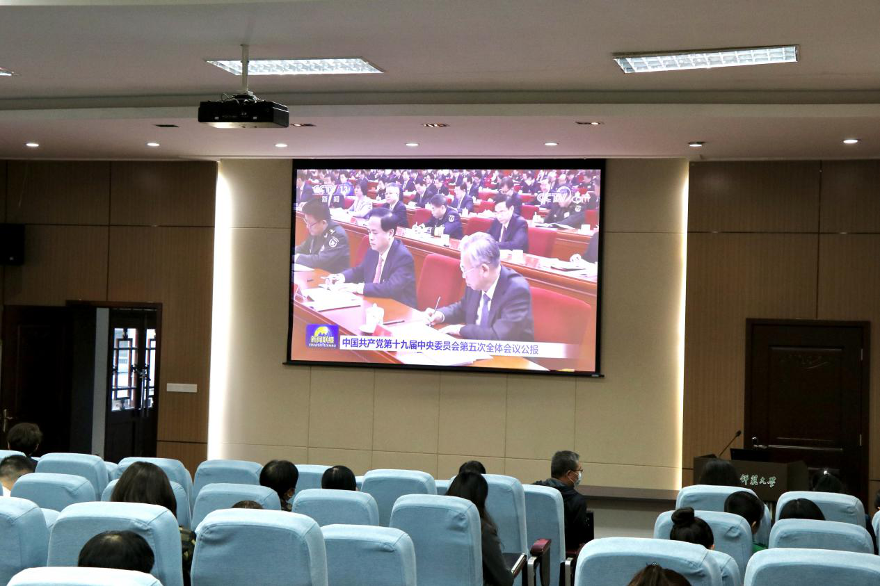 会前,全体教职工观看十九届五中全会视频学习资料。