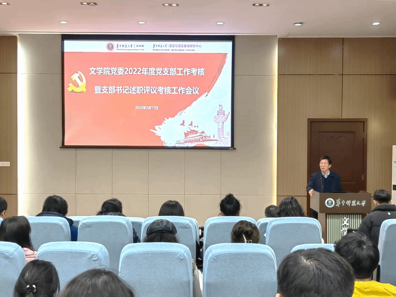 (通讯员陈灿 马骁)3月17日,文学院党委2022年度党支部工作考核暨支部书记抓党建述职评议考核工作会议于文学院一楼报告厅举行。学院党委委员、党支部书记、各党支部党员代表和群众代表共44人参加会议,会议由文学院党委书记朱庆海主持。
