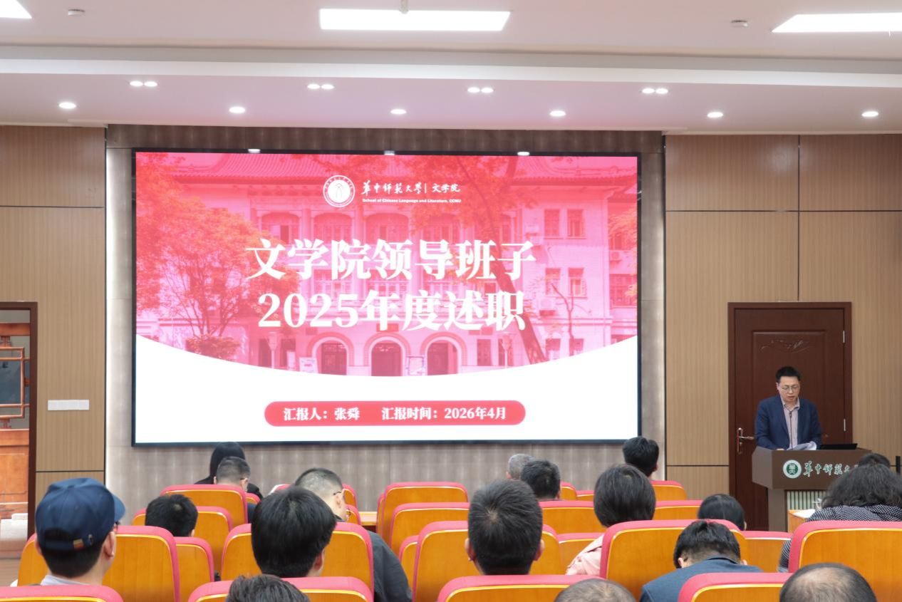 文学院讯(通讯员 邹秦丹)4月15日,华中师范大学文学院在2201报告厅召开2025年度领导班子和领导干部述职述廉大会。会议由文学院党委书记张舜主持。校党委组织部徐丽老师出席会议。