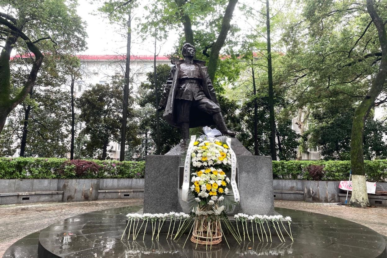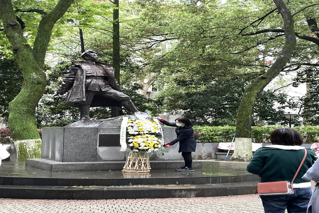 2021年4月1日中午12时,华中师范大学中国民间文学专业研究生与导师联合党支部于中国传统节日清明之际,联合华中师范大学“光未然”文化自信宣讲团、非物质文化遗产传承与发展协会,在华中师范大学“光未然”广场,创新党史学习教育形式开展“缅怀光未然,传承红色基因”的祭奠校友光未然先生活动。文学院党委副书记徐福刚为活动致辞,党支部指导老师、离退休干部处处长何小红同志为花篮整理缎带。