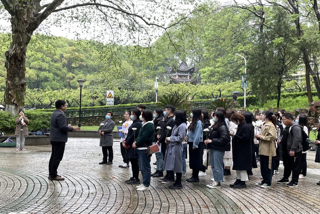 学生党员代表、博士生丁萌发言,希望通过缅怀先烈,传承红色基因,不忘初心,牢记使命。他表示,青年是祖国的未来,应当努力学习先辈们的责任担当,学习中国共产党的红色历史,将我党宝贵的精神财富外化为实现民族复兴的实践行为!