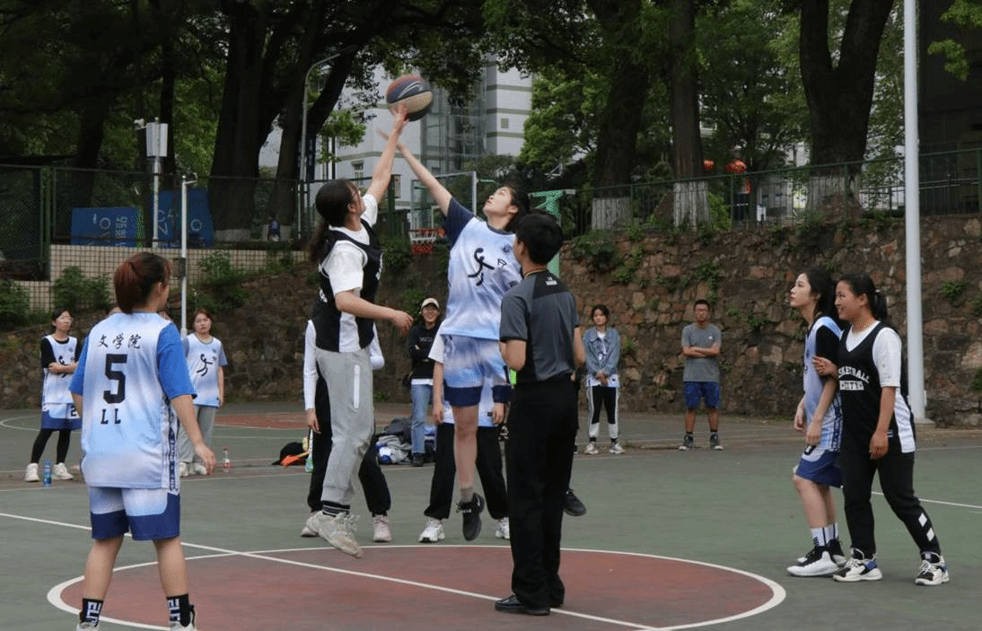 至上半场比赛结束,文学院以31:10的比分暂时领先政治与国际关系学院。中场休息时,双方教练各自出谋划策,加油鼓劲,而文学院队员们在暂时占据比分优势的情况下也毫不轻敌,她们积极调整状态,互相加油打气,继续投入到后续的赛程之中。