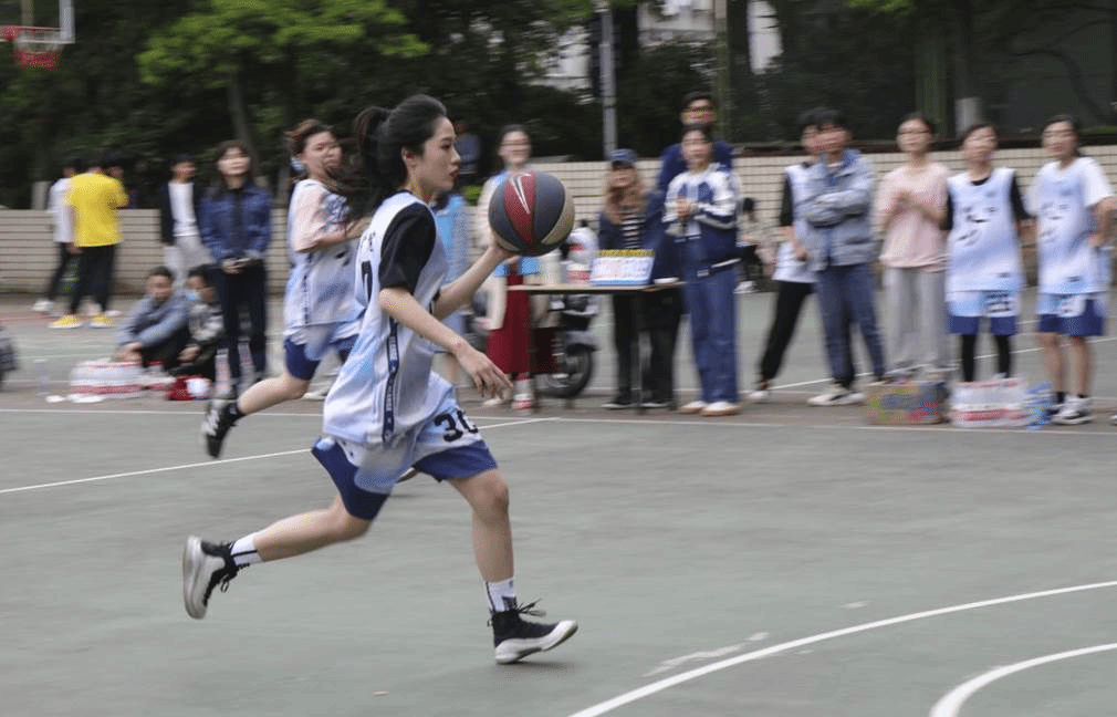 短暂休息后,比赛继续进行。下半场比赛刚开始三分钟,政国学院队员就展开了强势进攻,率先进球得分。在随后的罚球中,政国学院两罚两进,进一步缩小了比分差距。文院队员面对紧张的赛况沉着冷静,及时调整,成功防住对方队员的进攻。紧接着,文院30号王韵涵带球冲破数人防守,投进了漂亮的一球,赢得场外观众的喝彩。在比赛过程中,文院战术灵活、传球默契,15号陈艳燕在投篮未进的情况下,迅速反应,果断抢球传给队友,17号许璐涵精准接球,冲向球框,直接投篮得分。在比赛进行至最后两分钟时,场上依然战况激烈。政国学院罚球遗憾未进,再次回到紧张的对阵中。文院队员们也越战越勇,传接流畅,10号韩云艳将球传给队员,又为文院夺下一球。