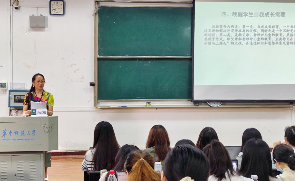 在讲座末尾的提问环节,许红明耐心地解答了同学们的疑问。她认为同学们应该一步一个脚印,不断丰富自己的学识,成为一名追求卓越的人民教师。