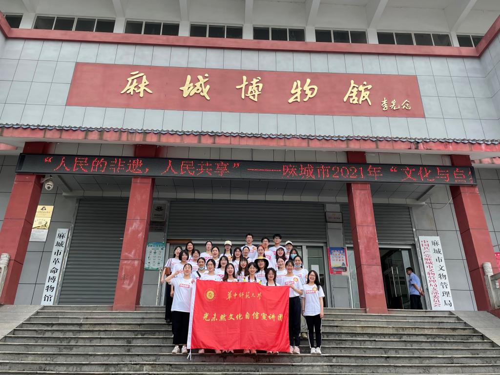 (通讯员 崔子赟)2021年7月8日至10日,华中师范大学文学院“光未然”文化自信宣讲团赴湖北省麻城市开展红色文化研学之旅。8日,宣讲团参观了麻城烈士陵园和麻城博物馆。本次研学之旅由文学院团委书记李哲立,团委副书记陈若千、鲍思琦带队。