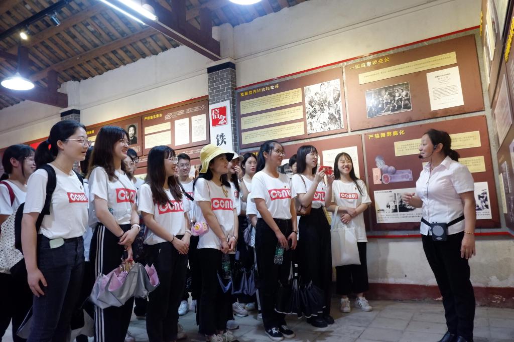 接着,宣讲团成员依次参观了第二、三、四展厅。第二展厅主要展现了土地革命时期共产党与人民群众的深厚情谊,共产党为当地百姓兴办学校,建立合作社,开办农场,乘马岗人民也以参军为荣,紧跟党的步伐,不断向前。第三展厅是学生军指导部复原现场,展出了农民协会犁头旗和大革命时期农民武装使用过的武器。在近距离地参观与观察中,成员们深刻地体悟到革命先烈们英勇不惧的精神和坚定的革命理想。第四展厅主要展示了乘马岗主要的将军人物以及他们的革命故事。在参观的过程中,讲解员配以生动独特的民歌,为成员们展现出乘马岗特殊的民俗风情。同时在歌谣的感染下,成员们深刻地体会到乘马岗将士们忠于党忠于人民的高贵品质,坚韧不拔、勇往直前的英雄气概,鞠躬尽瘁、死而后已的奉献精神。