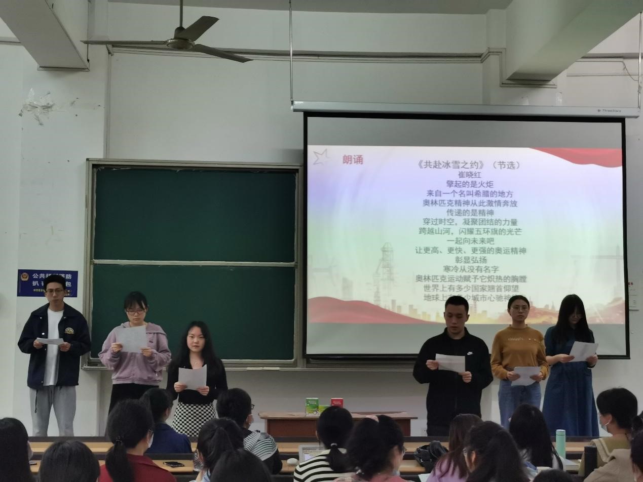 3月12日晚,文学院的学员们带来了第一次展示。他们以“冬奥会中的党员担当”为主题,从“冬奥会中的党员参与”“构建人类命运共同体”以及“中国智慧”三个方面展现了我党在冬奥会中的担当和成就。此外,小组的六位同学进行了配乐朗诵,形式多样。