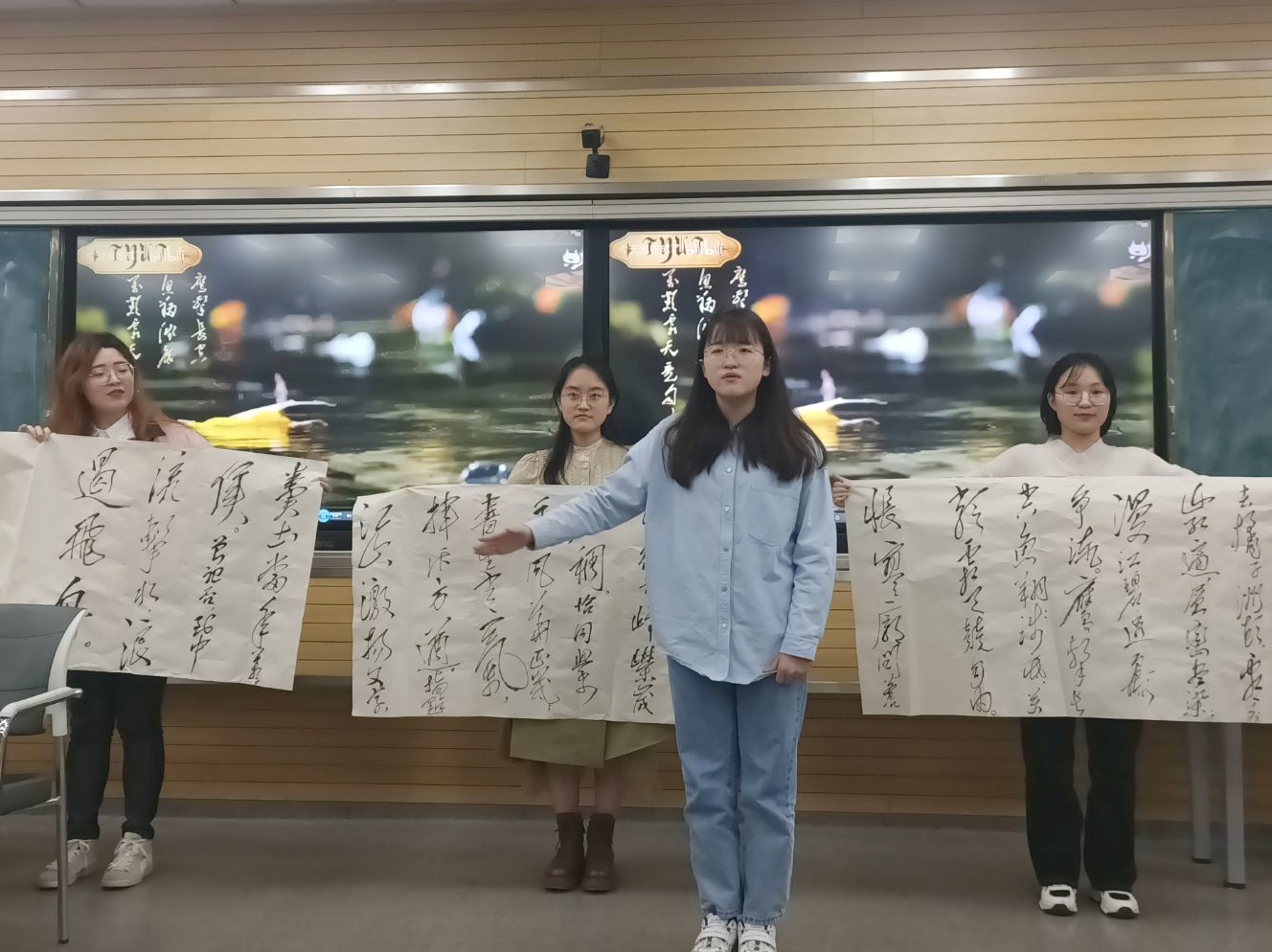最后,活动进入颁奖环节。经班导师和全班同学现场投票,第一组获“气氛炸场王”称号,第二组获“趣味百诗通”称号,第三组获“语言艺术家”称号,第四组获“知识分享官”称号,第五组获“珠联璧合体”称号,毕智慧、王婧等人获“最佳发言者”称号。班导师陈秀玲为获奖小组和个人颁发奖状并合影留念。