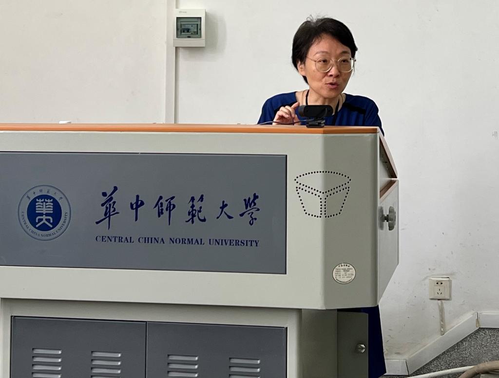 6月22日上午,在见习工作小组负责人张筱南主持的第三学期早会结束后,由华中师范大学文学院主办的2022年第三学期师范生培训系列讲座第一场于9号楼9-11教师举行。本次讲座邀请江文莉担任主讲人。江文莉是武汉市第十二高级中学语文高级教师,语文教研组长,教育硕士。她始终在教学中坚持“大语文”观,追求人文教育,以学生为本,关注学生身心健康,全方位创设宽松和谐愉悦的学习环境,志在于营造因材施教、寓教于乐、寓思于学的健康向上的课堂生态。