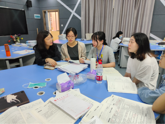 九月下旬,华一初语文实习组进入华师一附中初中部参与实习工作已历三周;过去两周,实习生的学科实习工作和班主任实习工作均已步入正轨。日常撰写听课记录,完成实习手册,批改学生作业、试卷以及作文已成为工作常态,实习生与华师一附中初中部指导教师的合作初见成效。班级管理方面,实习生与学生相处日渐融洽,每日晨读、午检、中晚餐、课间操、眼保健操、核酸检测,每周班会课、体育活动课,实习生均按时到班到场,帮助班主任巡查监督,确保学生在校的学习生活安全有序。实习期间,实习组的指导老师杜娟多次前往实习学校看望语文组实习生、监督实习进度,指导实习生的教育教学,提出改进建议,并对实习工作给予初步肯定。