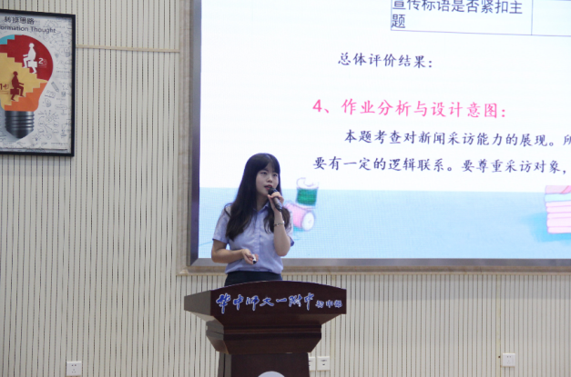 (通讯员 刘子洋 胡雨欣 秦凤怡)2022年9月28日上午九点,为贯彻落实“双减”政策精神,加强语文学科建设、推进分层教学,华师一附中初中部开展了语文“学科周”活动。“学科周”是华中师范大学教育集团的特色教研活动,此次活动主题为“初中语文学科作业优化设计的探索”,主要探讨语文学科作业结构设计的优化问题,以构建高效课堂和加强教师队伍建设等途径助推青年教师专业成长,华一初语文实习组因教育实践得以参与到此次的教研活动中来。当日上午,华一初语文实习组随华师一附中初中部指导老师到达活动现场,学习优秀作业设计范例,倾听学科专家和区教研员针对“优化作业设计”提出的独到的观点,以及对八年级备课组作业设计范例的评价,并亲自参与会议讨论。会后,文院指导老师杜娟前往八年级实习生办公室为此次活动作出内部总结。