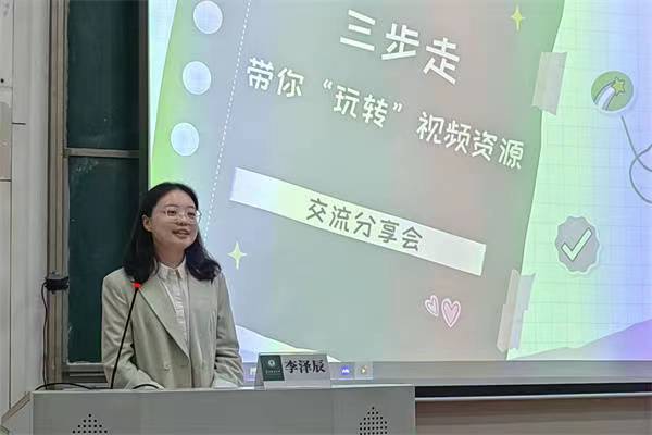 会议伊始,李泽辰同学从“为什么”“选什么”“怎么看”三个角度分享了“三步走玩转视频资源”法。她认为现今网络资源丰富,时间碎片化程度高,同学们对于提升自我的需求不断增强,这就使得利用好视频资源变得尤为重要。同学们可以选择云上中文、国家中小学智慧教育平台等网站,《2019主持人大赛》《一本好书》等文化综艺,或中国教育学刊、教育学报等公众号进行学习。李泽辰还认为,进行视频学习应做到模仿与创新并重、短期目标与长期目标共存。在观看视频的过程中应关注着装、教姿教态、语言组织、板书结构、教学环节以及结构思路等具体方面。此外,为帮助师范生日后参加师范生技能大赛打下良好的基础,李泽辰同学就如何备赛分享了自己的经验。首先是要明确比赛要求;其次应当选择相关教学片段,关注时间分配;同时关注教姿教态和教学设计与技巧。为了让同学们更好地运用以上方法,李泽辰在方法分享结束后以郁达夫的作品《故都的秋》为例,展示了在具体实践中应如何备课和讲课,在场的同学受益良多。
