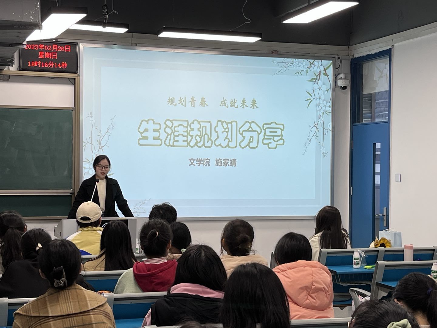 为帮助学生明确生涯规划,更好地进行自我认识与自我成长,2月19日起,文学院2022级本科生开展“开学第一课”系列活动,形成了“年级—班级”活动结构、“辅导员—班导师—朋辈导学—学生”四方联动模式,为学生搭建起较为完整的生涯规划指导体系。