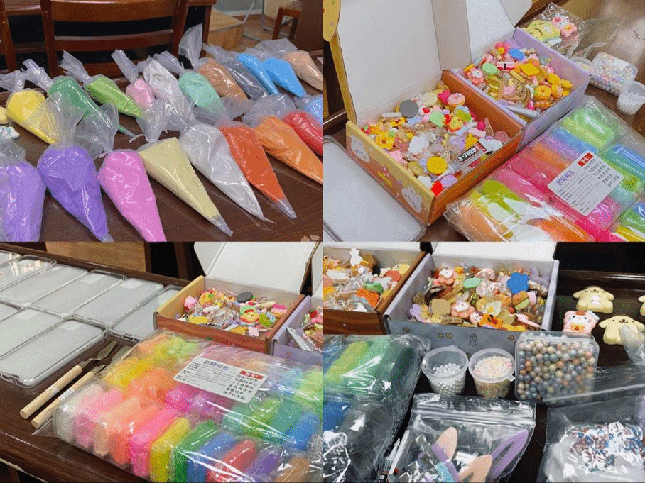 本次活动获得了各专业同学们的热烈支持,共25名同学积极参与到活动中来。活动正式开始前,专业负责人已经将颜料、发卡、手机壳、粘土等材料整齐地摆放在桌上。本次活动大家可以自行选择制作手机壳、发卡或粘土的手工项目,色彩斑斓,形状可爱的原材料等待大家选择。