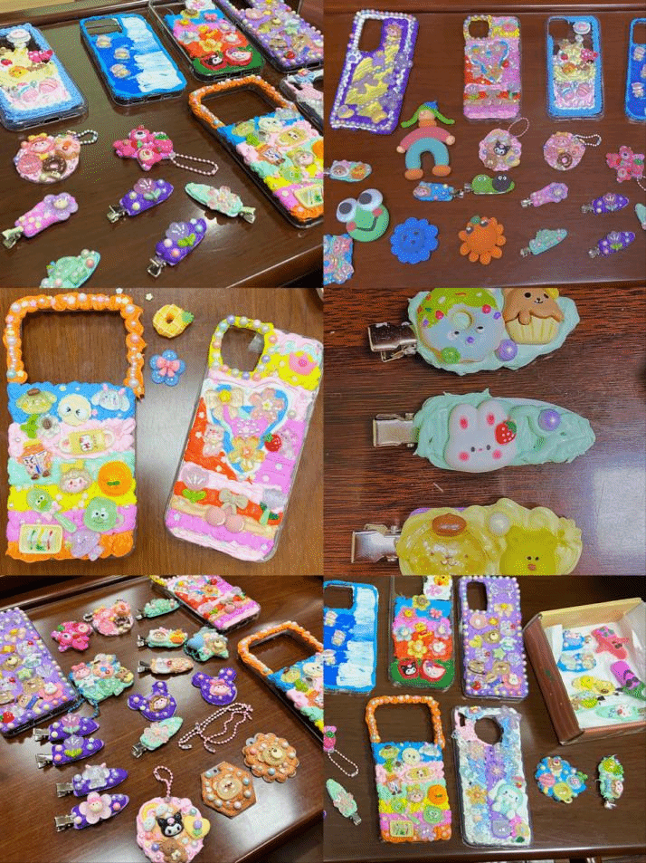 2023年3月27日晚6:00点,参与活动的同学陆续到场,活动在一片轻松活跃的氛围中拉开帷幕。大家共同交流DIY手机壳、发卡,粘土的流程,根据自己的喜好选择不同的颜色以及摆件搭配方式,发挥无尽创意,在色彩斑斓的奶油胶上镶嵌各类饰品,精心制作出一款款独一无二的手工作品。
