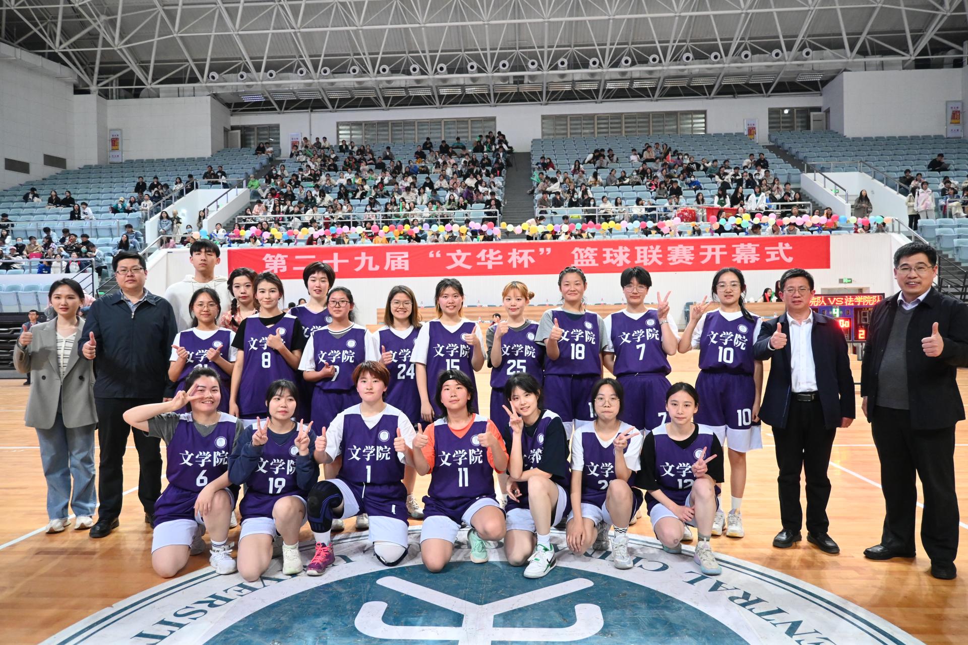 (通讯员:盛欣然 秦乙淞 丁丽娜)4月7日晚,第二十九届"文华杯"篮球联赛揭幕赛在佑铭体育馆举行。首场比赛为文学院女篮(以下简称为"文院女篮")对阵法学院女篮(以下简称为"法院女篮"),文学院女篮以46:11的佳绩战胜法学院女篮,夺得文学院在本届"文华杯"的首场胜利。在随后进行的第二场比赛中,文学院男篮(以下简称为"文院男篮")以34:45的成绩惜败生命科学学院男篮(以下简称"生科男篮")。