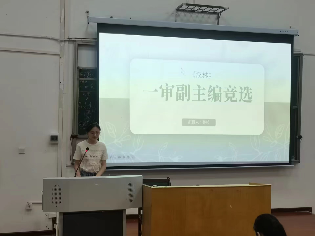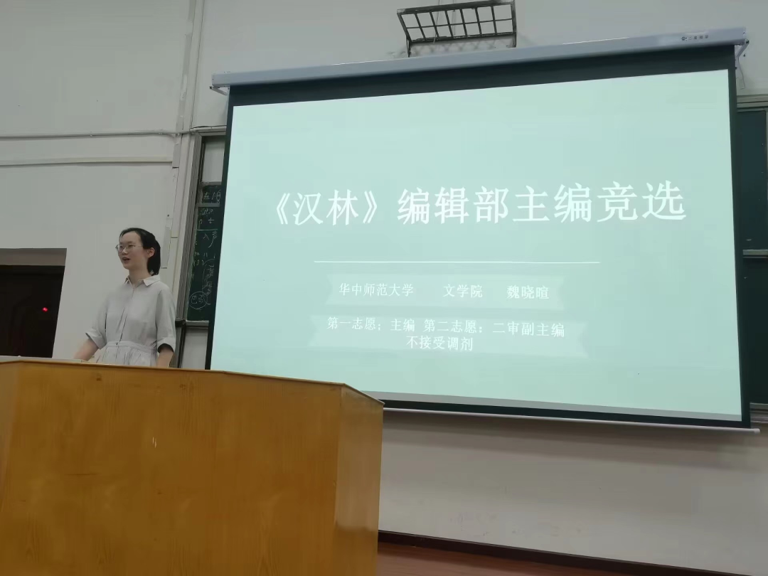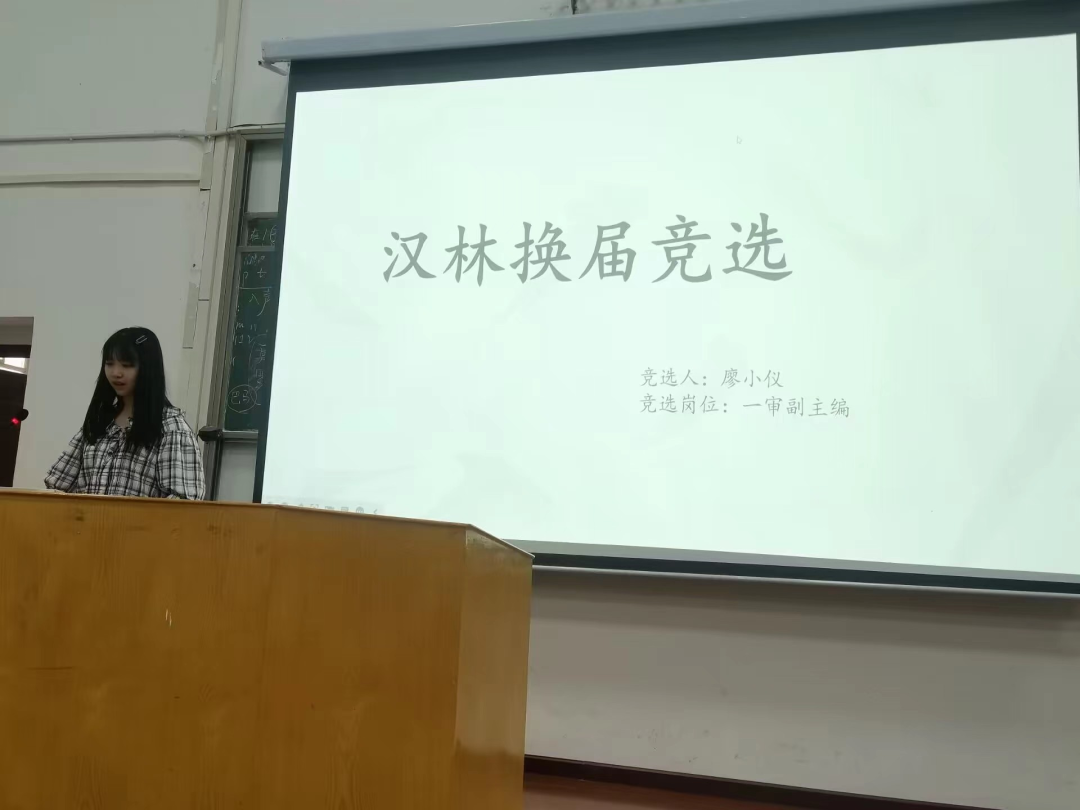 在竞选过程中,各位候选人各抒己见,从对所竞选岗位的认识、工作中发现的问题以及工作计划等方面开展竞选演说。在竞选后的提问环节中,主编、副主编们对候选人提出了中肯的建议,从可操作性、时间成本、协调配合能力等角度进行评价,候选人们获益良多。三审副主编竞选者高慧敏表示,感谢学姐们中肯的建议,启发她更加全面地安排工作内容,为以后的《汉林》发展提供了宝贵经验。