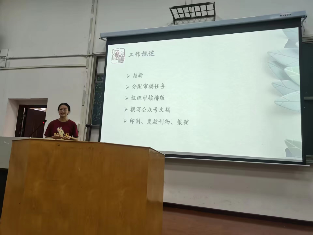 本次会议以候选人竞选为主要内容。候选人根据竞选职位不同,按照一审副主编、二审副主编、三审副主编、主编竞选顺序发表竞选演说。主编候选人魏晓暄总结了自己过去一年的工作情况,阐述了自己对于主编工作的认识和工作规划,就《汉林》未来发展提出了自己的建议。她提出加大文院《汉林》宣传力度与广度,举办更多线下活动等建议。