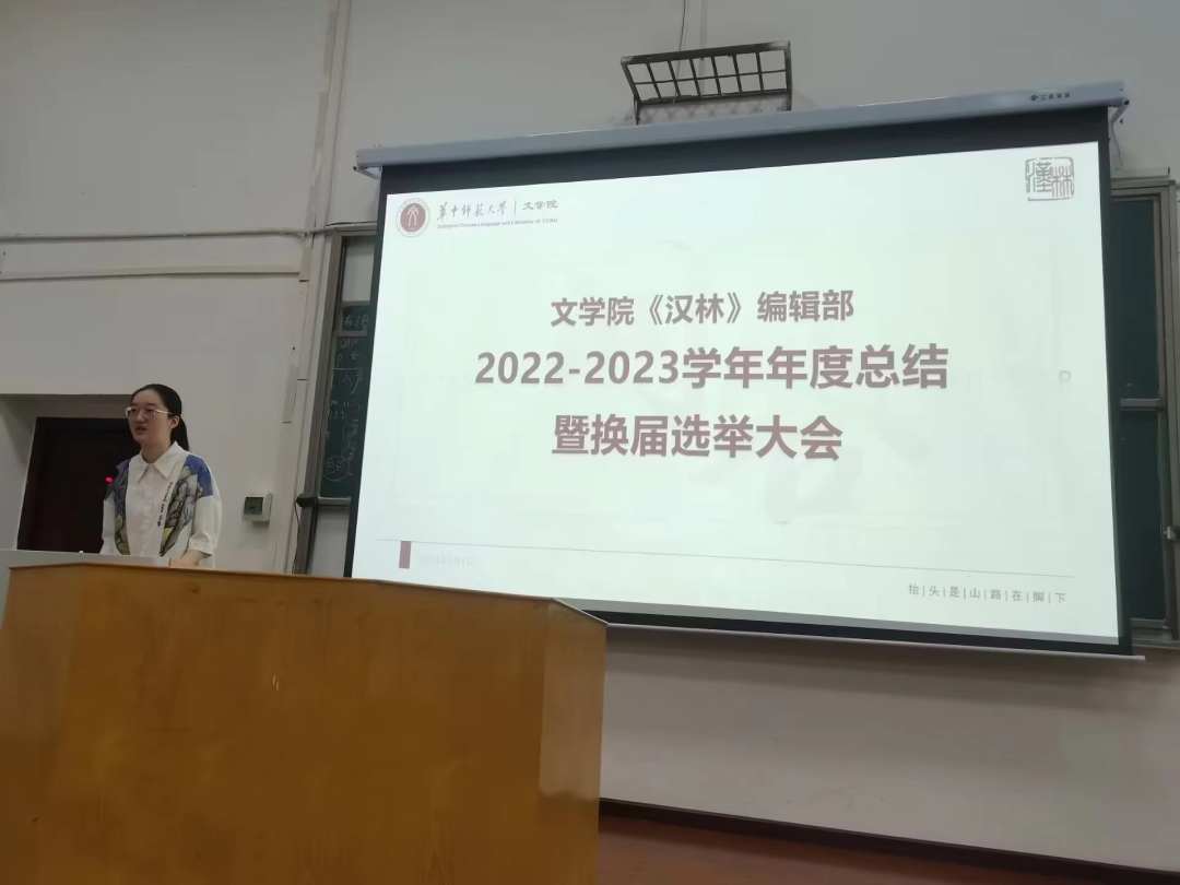 2023年6月3日,文学院院刊《汉林》2022-2023年度换届大会在文学院2201教室召开。《汉林》主编谷一昀,副主编汪昕菲、刘佳昕、何心怡及竞选者参加会议。