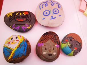 在“石头画制作”活动中,同学们发挥自己的聪明才智,依据不同石头的形状特点,用丙烯材料为石头赋予新的生命。在这个过程中,同学们认识到了不同石头的独特之处,体会到与石头生命的交融,同时认识到关注自我心灵的重要性。