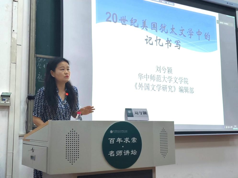 讲座伊始,刘兮颖老师结合自己的人生经历介绍了自己进行美国犹太文学研究的契机,她提到是偶然间在图书馆阅读的《更多的人死于心碎》这本书开启了她的外国文学研究之旅。接着,刘兮颖老师语重心长地告诉同学们热爱是最好的老师,鼓舞同学们要在热爱中寻找自己的研究方向。