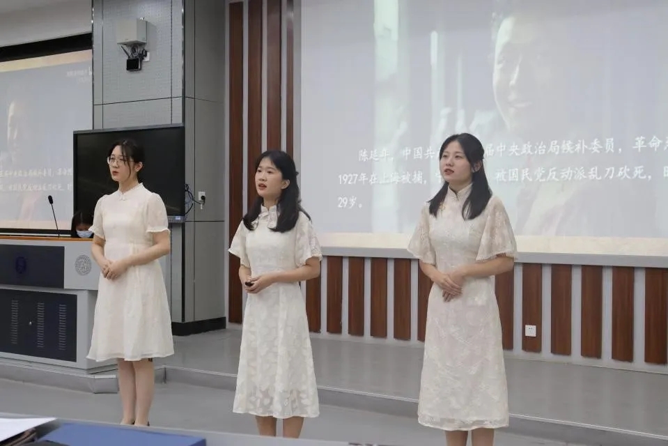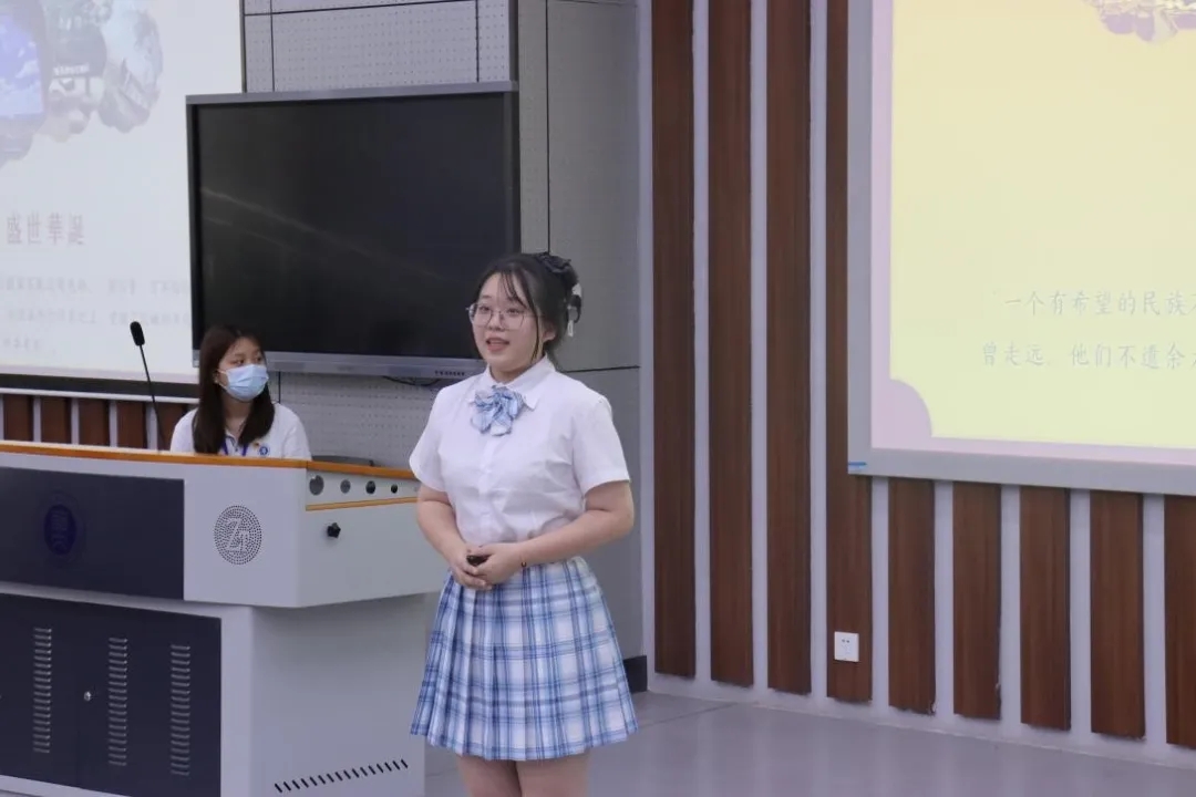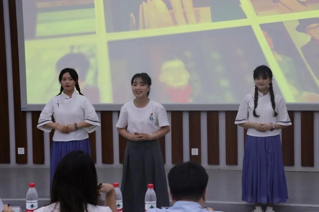 薪火相传,师道永继,以先驱之名,铸中华丰碑。马克思主义学院的董仙、熊若伊、王丽媛通过英雄事迹追溯了那段风云激荡的建校历史。她们通过讲述陈振翠老师教育兴国,扎根乡村的故事传递出了老师无怨无悔的心声,最后,通过分享自身支教的故事,为我们再现了华师学子谱写青春华章的奋斗历程,学子们也终将带着忠诚博雅、朴实刚毅的华师精神到祖国最需要的地方去!