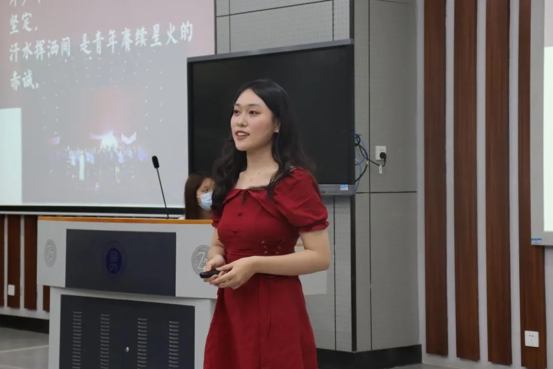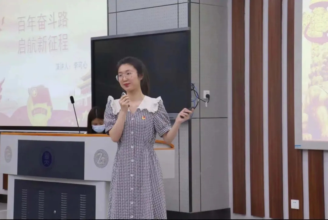 “筚路蓝缕创伟业,不忘初心启新航。”数学与统计学学院的张骞文先带领我们回眸党的一百年历程,又号召大家牢记“其身正,不令而行。其身不正,虽令不从”的行为准则,最后告诉我们当今恰逢花开,少年风华绝代,惜时锦瑟年华,需将灵魂滚烫寄托于向国而生的红色信仰。