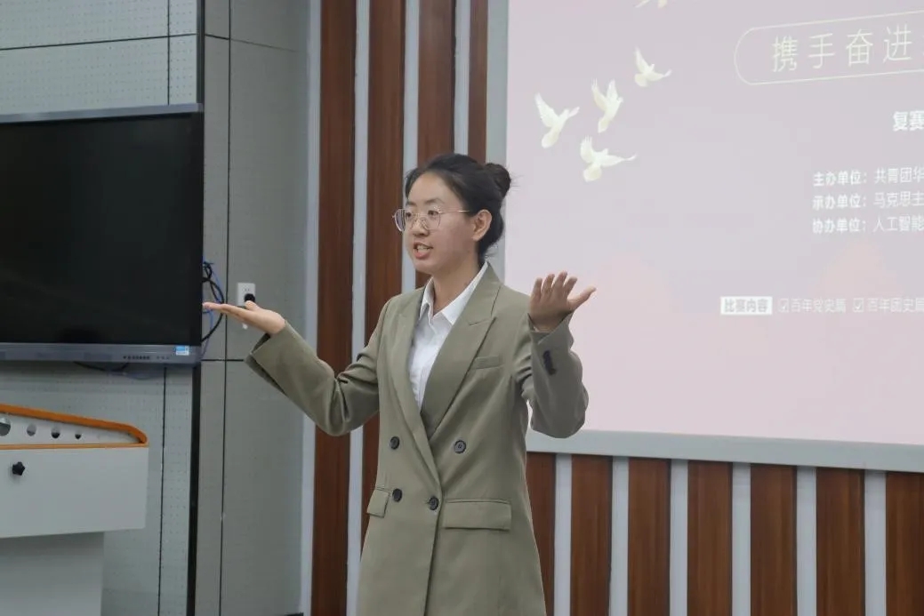 经过初赛的激烈角逐,有10位个人参赛选手和14组团队参赛选手脱颖而出成功入围复赛。复赛以线下的现场演讲的形式开展,参赛选手依据选定主题提交稿件并于现场演绎。大家热情洋溢,情绪高昂,以“携手奋进新征程,青春之名谱新声”为主题,从全新的角度、多样的形式讲述党史、团史、校史历程及新时代青年与先进人物的光荣事迹。