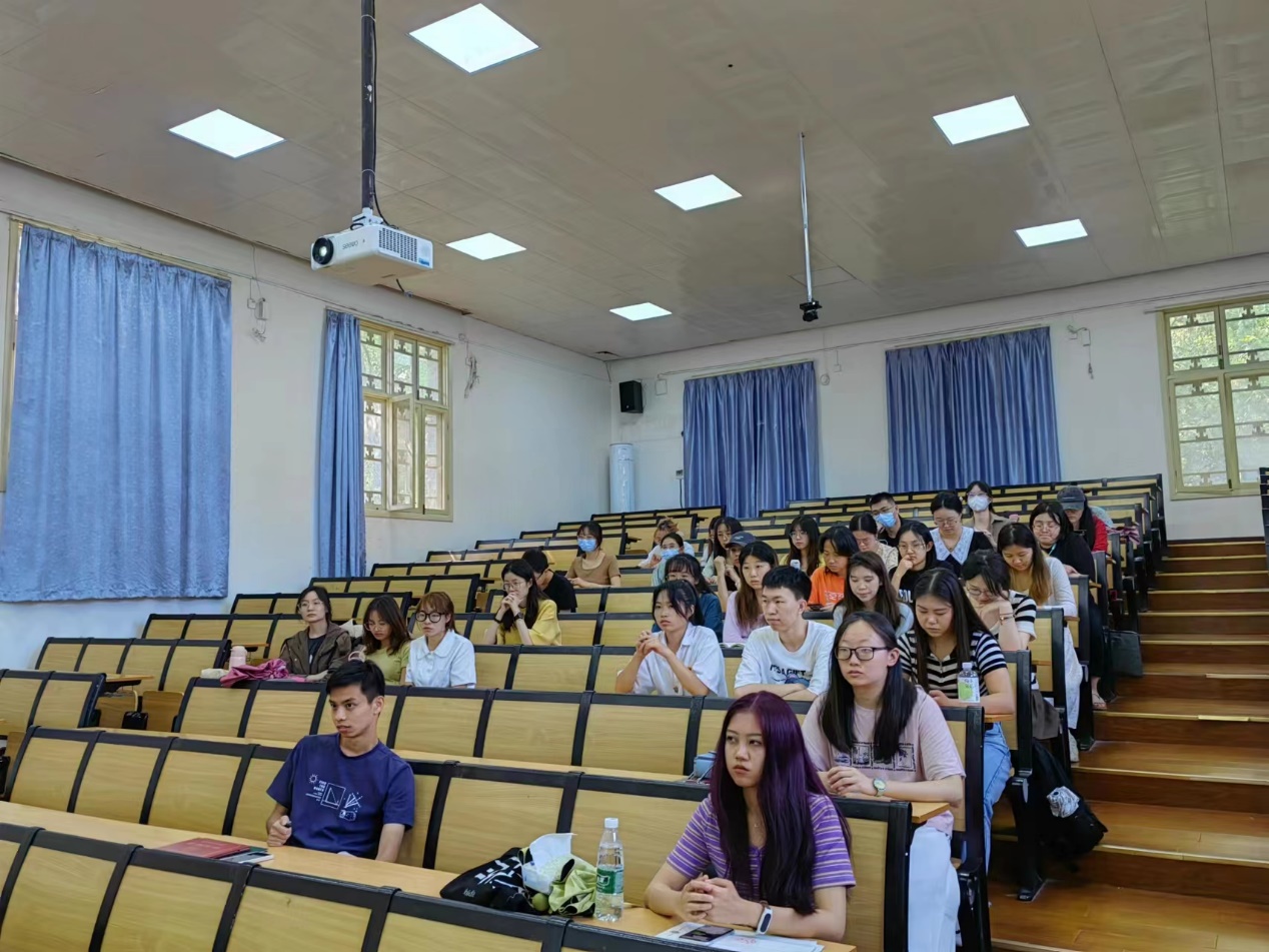 在三位优秀毕业生分享完毕后,王洪涌院长上台分享了她对在场汉语言专业学生们的寄语。王院长提出专业认同感这一重要问题。王院长指出,许多学生对语言学专业还存在着抵触和偏见,其根本原因在于两个方面的不了解。首先是对语言学的不了解,王院长分析了语言学在教学工作中不可或缺的作用,生活和工作的方方面面其实都离不开对语言知识的掌握,然而许多人并没有认识到语言学的价值和重要性。由此,很多同学在专业分流时就错失了一个深入了解语言学的机会。第二点是针对同学们对于本校语言学专业的不了解,王院长接着介绍了文学院语言学专业雄厚的师资力量以及学术资源,并建议同学们主动去广泛了解学院语言学专业的老师,和这些优秀的老师多多交流。而本次活动以及其他各项活动的开展,也正是为了增加同学们的专业认同感和对专业的了解。