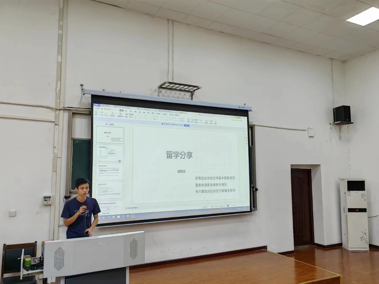 紧接着来到了19级优秀毕业生的经验分享环节。首先由19级的镇熙宇同学分享关于留学方面的经验。镇熙宇同学即将就读香港大学语言学专业。在留学的准备工作方面,镇熙宇首先向大家介绍了留学可供选择的不同国家、大学及各自特点,接着展示了如何从国外大学的招生政策中提取有价值的信息,分析了英国、新加坡等地大学语言学专业对于报考学生的不同要求,总结了几所代表性大学对雅思、托福、六级等不同测试的看重程度。在备考心仪学校方面,镇熙宇分享了香港中文大学、香港理工大学等学校的笔试和面试经验,并建议同学们多涉猎国外语言学著作。最后,镇熙宇细致地介绍了准备留学的一系列流程及注意事项,并为在场的学弟学妹送上了真挚的祝福和鼓励。