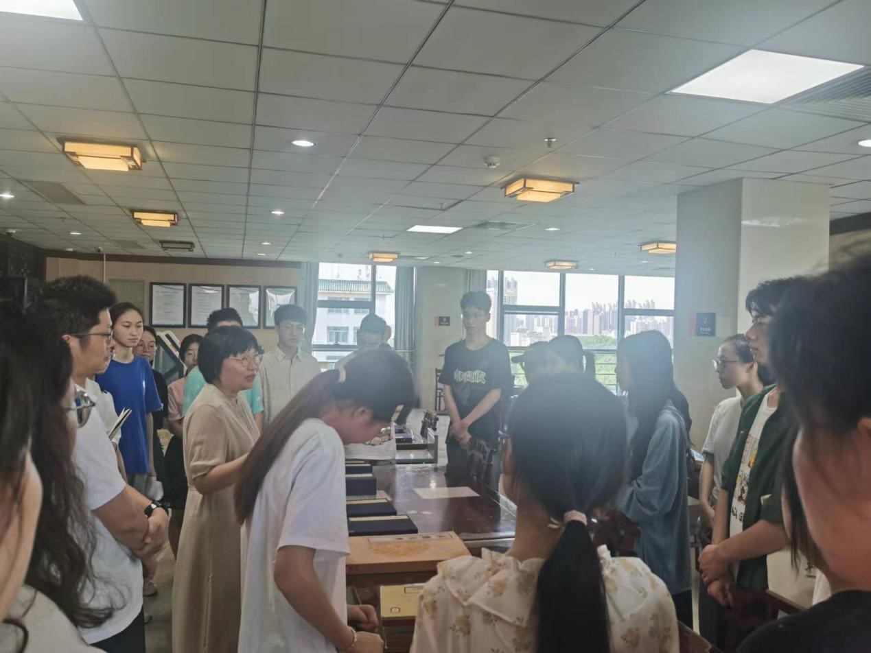 同学们还参加了“古籍与拓印”实践活动。7月6日上午同学们齐聚图书馆八楼古籍室,古籍管理员向大家介绍了华中师范大学图书馆的发展历程以及古籍室内藏书的来源。接着,她向大家介绍并展示了古籍的类型、装订的方式以及拓印的方式。在管理员的带领下,同学们有序进入古籍室参观,翻阅并学习不同种类的古籍,了解古籍的排列和分类的方法。最后,馆员为同学们精心挑选出三十本图书,让同学们沉浸式体验古籍阅读。通过这次学习,同学们将前几次讲座的知识融入到实践中,其中一位同学感慨道:“能够在大一就接触到古籍,让我感到十分荣幸,我以后会常来古籍室阅读,争取学到更多的知识!”