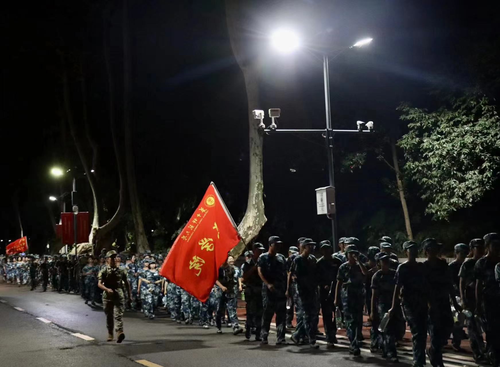9月14日晚,华中师范大学联合空军预警学院组织开展“征途万里铸军魂,百年初心力千钧”支部建在连上主题活动与军训特色项目——环校拉练。该活动响应中共中央宣传部印发的《关于组织开展2023年“全民国防教育月”活动的通知》号召,将思想育人与文化育人相结合,既激发了广大学子的爱国热情,又带领他们用双脚丈量校园、磨砺意志品质、铸就强健体魄、培养革命精神。