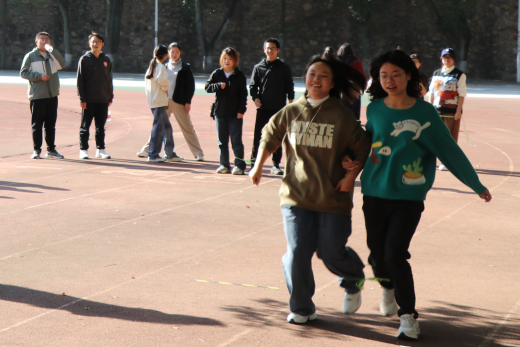 最后一个环节是“两人三足”。根据到达场地的先后顺序,各个小组确定了比赛的对手和队员站位。游戏中,成员之间配合默契,在欢笑声中结束了本次破冰活动。