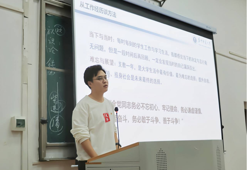 11月3日,华中师范大学第24届研究生支教团团长李瑞浩就“团学干部的初心与使命”进行授课,结合个人成长和学生工作经历为团干们提出建议。承载着老师们的殷切希望,本次活动落下帷幕。共青团干们纷纷表示自己在本次团干培训中受益匪浅,不仅对团学工作有了更多的认识,也对未来的学习和工作有了更清晰的规划。