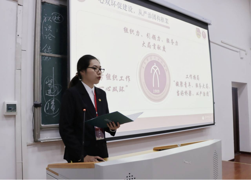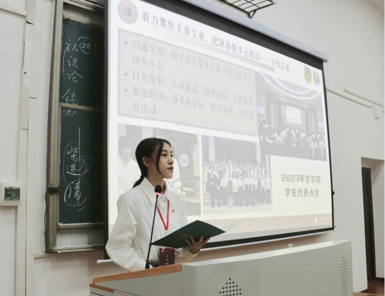随后,文学院团委副书记(学生)杨阳以及文学院学生会主席曾湘婷分别介绍文学院团委、学生会情况。