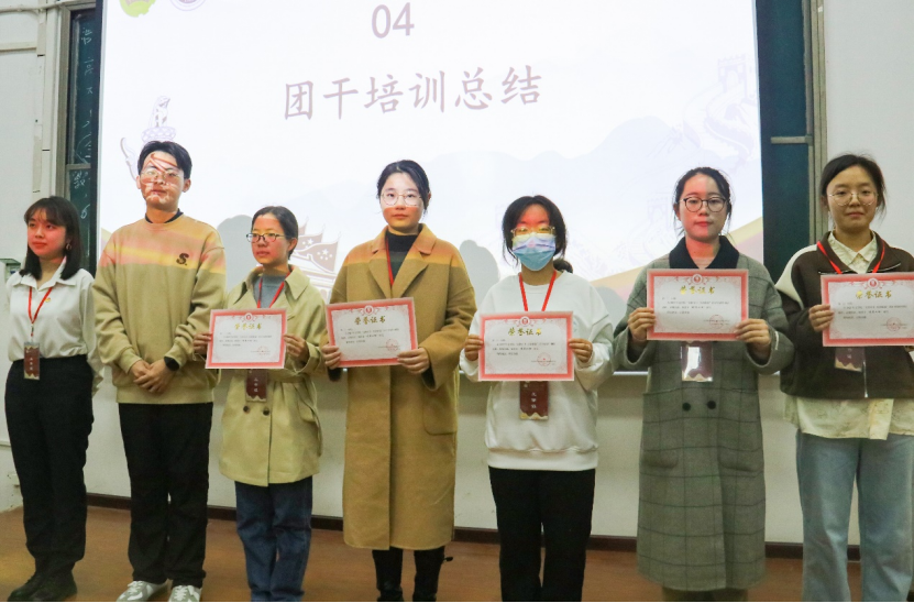 杨阳对本届团干培训进行了总结,唐艺卓为在团干培训中表现优秀的小组颁发了证书。
