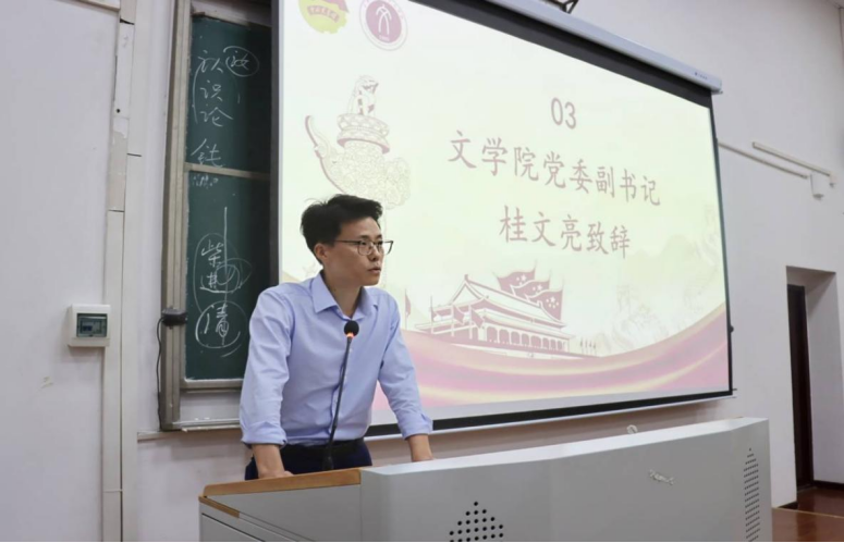 文学院党委副书记桂文亮为开班典礼致辞。他对团委学生会的青年们提出了三点希望,祝愿团干们学有所思,收获满满。