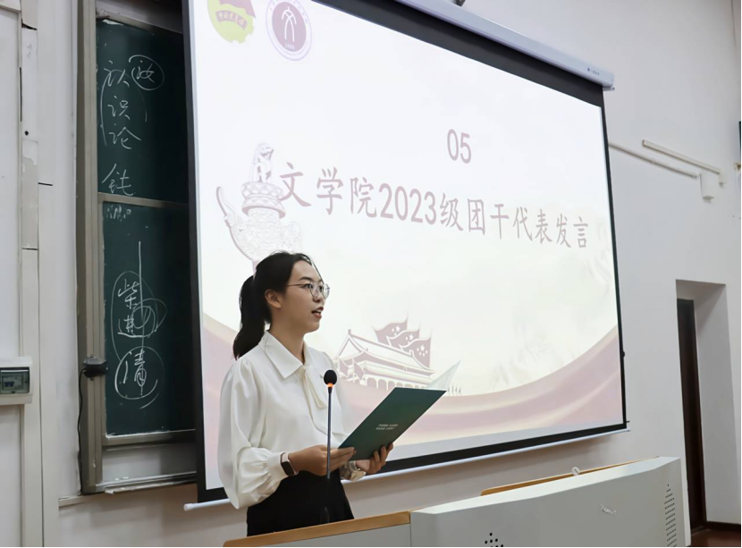 文学院23级团总支林诗洋作为团干代表发言,号召团干们以饱满的热情为学校建设贡献青春力量。