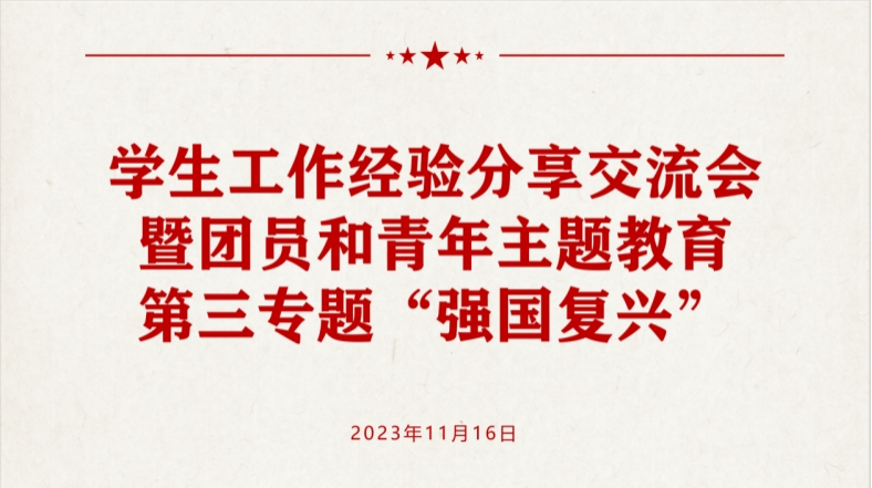 周芳宇从“新”——适应新环境,心态定成败;“心”——与优秀者交往,与同道者谋事;“欣”——超越自我的成就感;团员和青年主题教育第三专题“强国复兴”这四个角度进行了经验分享。