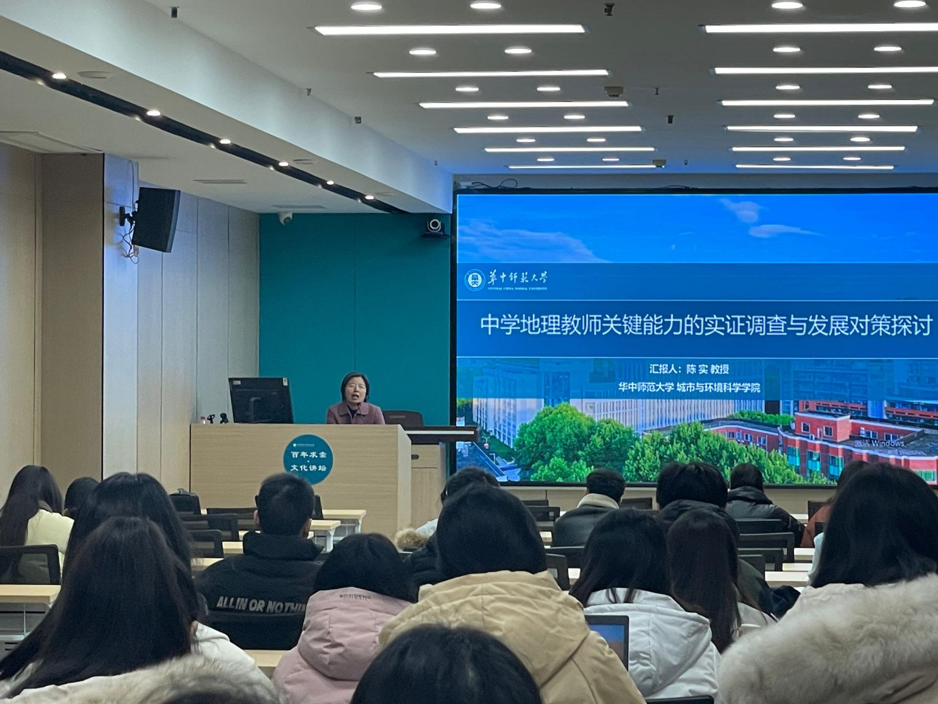 (通讯员:任悦)2023年11月30日上午,由华中师范大学研究生会主办,城市与环境科学学院研究生会、计算机学院研究生会承办,文学院研究生会、物理科学与技术学院研究生会协办的第42期“百年求索·文化讲坛”——“中学地理教师关键能力的实证调查与发展对策”讲座于城市与环境科学学院116报告厅成功举办。本次讲座特邀华中师范大学城市与环境科学学院陈实老师担任主讲嘉宾,来自多个学院的同学参与了本次讲座。