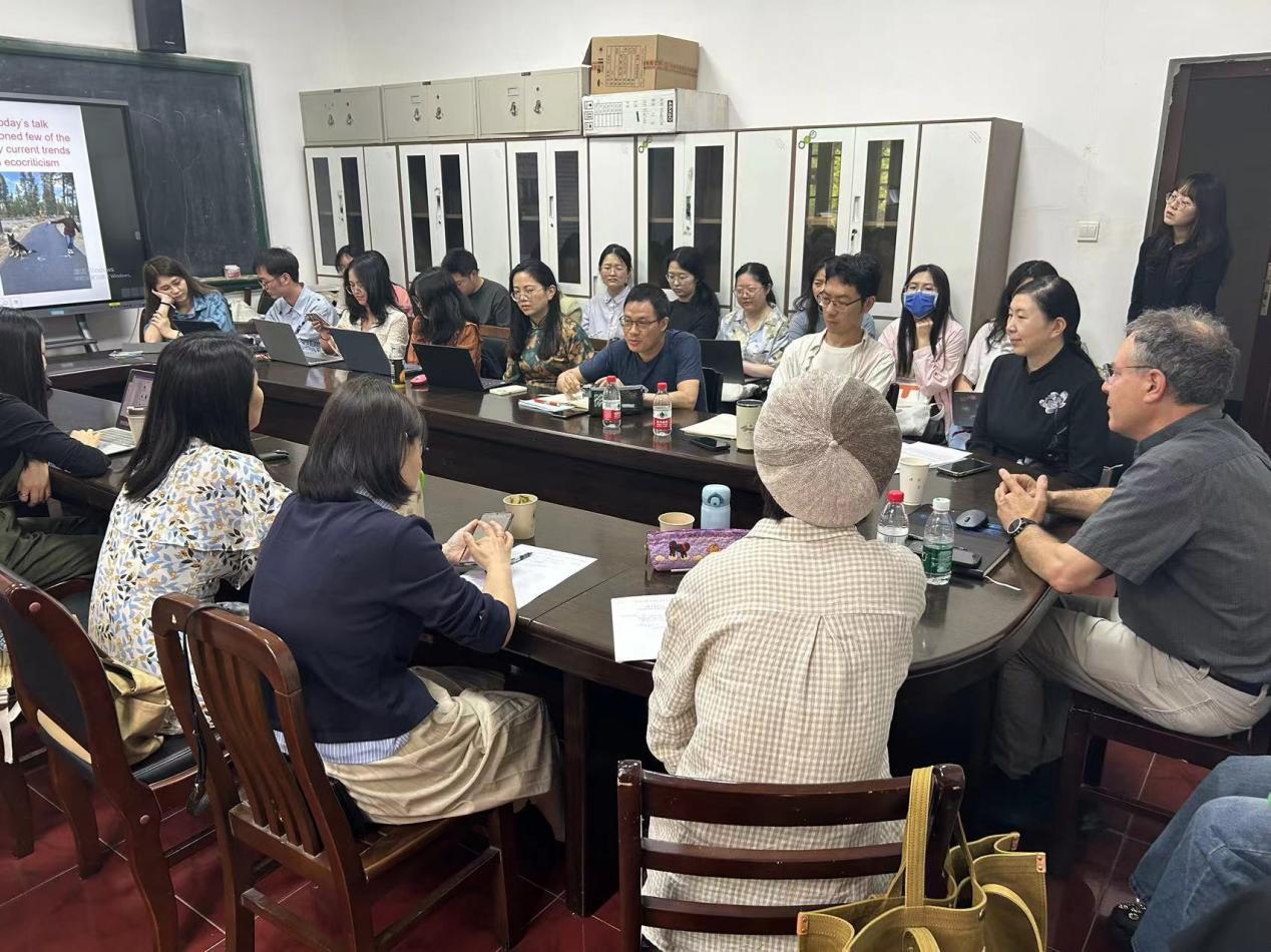 (通讯员 黄绮)2024年4月23日下午,美国俄勒冈研究院高级科学家,爱达荷大学环境人文学杰出教授,文学与环境研究学会(ASLE)首任主席,生态批评旗舰期刊《文学与环境跨学科研究》(ISLE A&HCI)主编(1995-2020)司各特·斯洛维克(Scott Slovic)教授应我院邀请,于华中师范大学文学院外国文学教研室进行题为“生态批评的新动向(Current Trends in Ecocriticism)”的专题英文讲座。本次讲座由文学院教授苏晖主持,上海师范大学教授陈红、外国文学教研室主任谢超、校内外的多位老师以及文学院和外国语学院的硕博士研究生参加。
