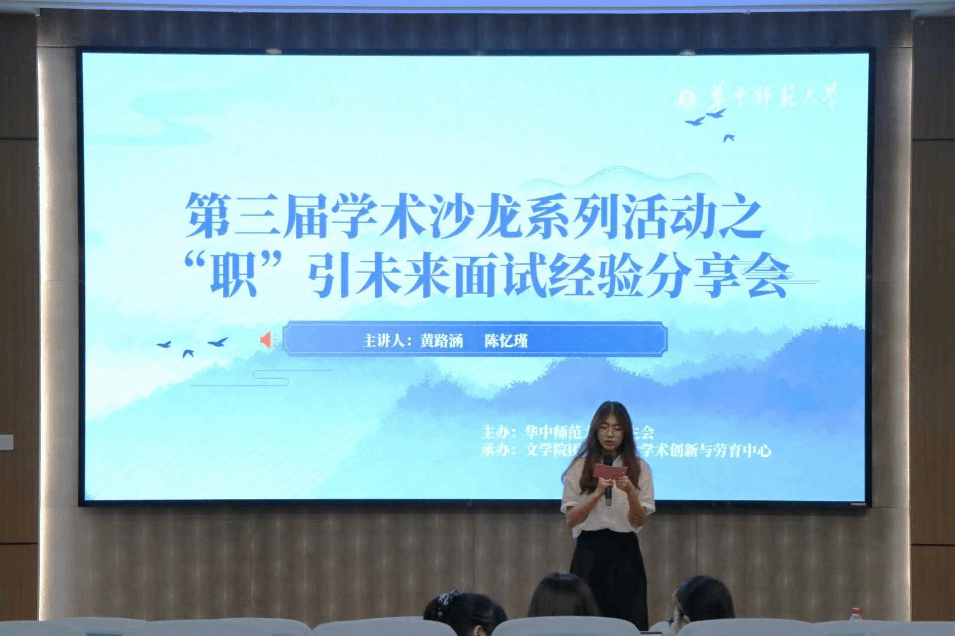 (通讯员 孙悦然)5月24日晚,华中师范大学学生会第三届学术沙龙系列活动之“职”引未来面试经验分享会于文学院一楼报告厅举行。此次活动由华中师范大学学生会主办,文学院团委学生会学术创新与劳育中心承办,活动备受瞩目,吸引了众多华师学子积极参与。
