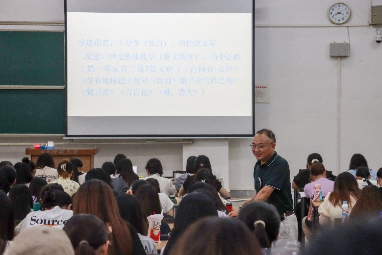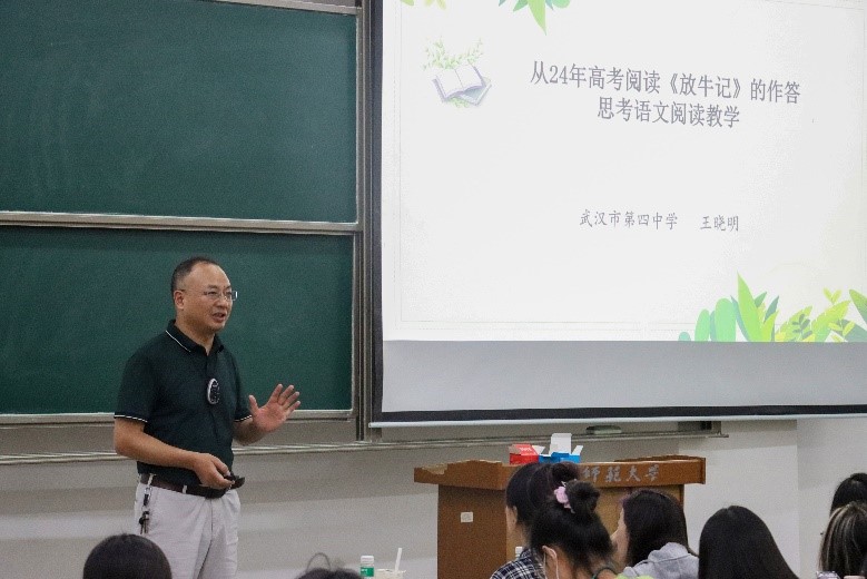 (通讯员 黄馨洋 陈知行)2024年7月3日下午,“语感教学——从2024年高考阅读《放牛记》的作答思考语文阅读教学”见习讲座在9号楼9-11教室顺利举行。本次活动由华中师范大学文学院举行,武汉市第四中学王晓明教师受邀担任主讲嘉宾。