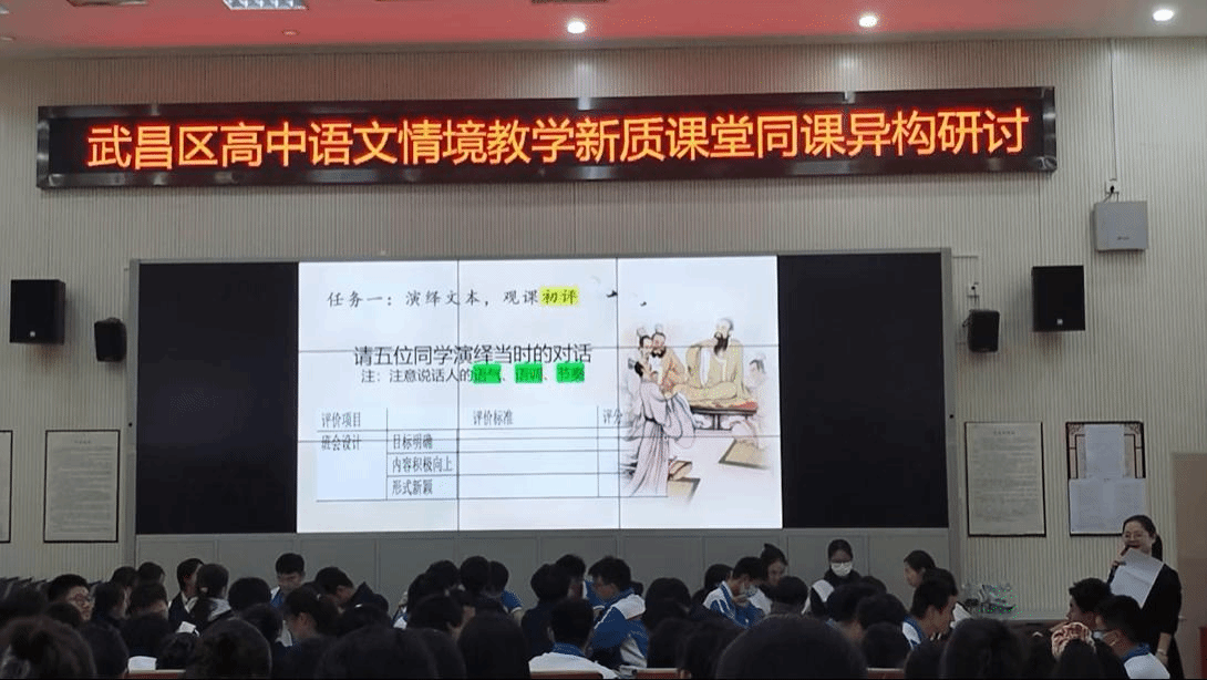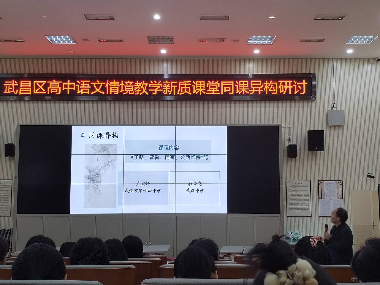 会议在热烈的氛围中拉开帷幕。李娟老师介绍本次研讨会的流程和目标。武汉十四中教师卢文静、武汉中学教师程诗尧进行《子路、曾皙、冉有、公西华侍坐》同课异构的情景教学展示。本堂课程不仅提升了语文教学质量,还探索更具创新性和实效性的情境教学方法。