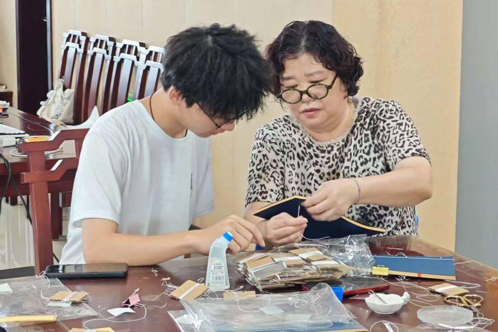 张华从制作步骤、技艺手法等三方面对古籍装帧进行具体演示,带领同学们亲身体验打孔、穿线、贴签等各个环节。当亲手装帧的线装书册最终捧在掌心,匀整的线迹与妥帖的书签无声诉说着匠心真谛:它不在于恢宏,而在对穿孔逻辑的推敲、毫厘误差的较真,以及古制规矩的敬畏之中。