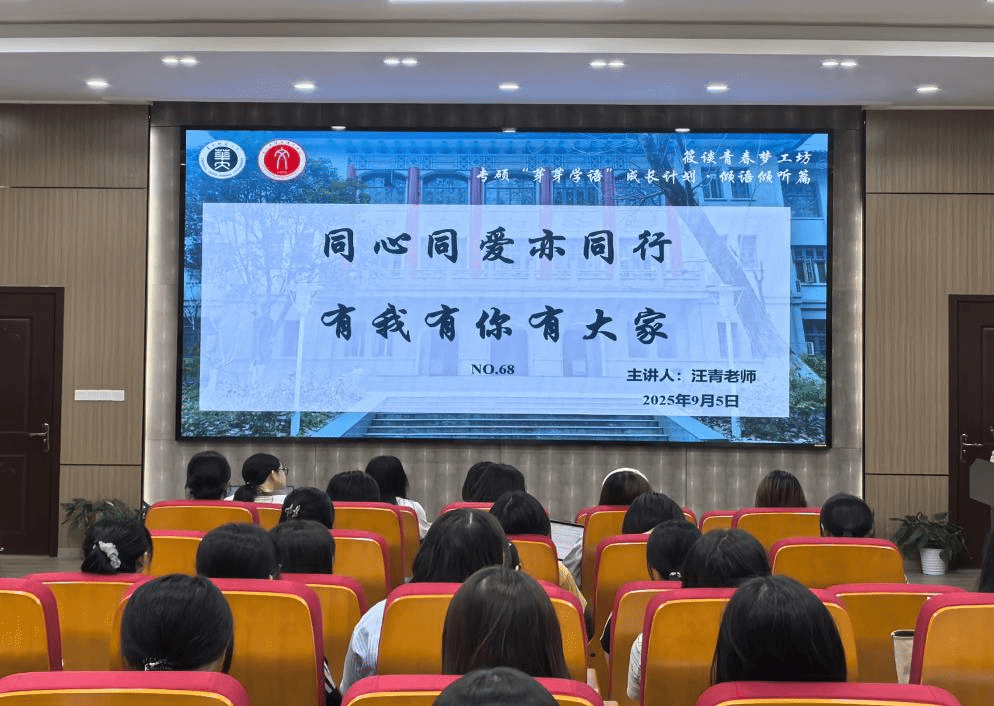 文学院讯(通讯员 汤惠敏)9月5日,文学院研究生辅导员、筱谈青春梦工坊负责人汪青在文学院一楼报告厅面向全体专硕同学开展了以“同心同爱亦同行,有我有你有大家”为主题的新学期第一次新老生见面会。