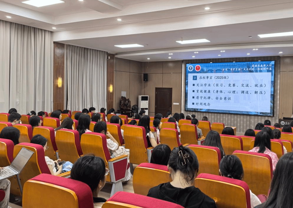 紧接着,汪青分年级梳理了本学期新老生的在校关键事宜。针对2025级,她从学业规划、健康管理、纪律遵守、时间观念、人际关系等方面提供了宝贵的建议,鼓励同学们积极熟悉学校环境,合理规划学业与职业生涯,培养健康的心理状态与和谐的人际关系,快速适应校园生活。针对2024级,她将实习与就业作为重点关注内容,提醒同学们珍惜实习机会,积累实践经验,积极关注就业信息,为即将到来的就业季做好充分准备。此外,她再次强调纪律遵守与安全防范的重要性,让同学们务必确保在实习与校园生活衔接过程中,不放松对自身行为的要求,保障个人安全与权益。她还鼓励大家开展年级间、专业间的沟通交流,帮助新生同学尽快了解专业学习的阶段性内容和目标,了解校内及周边环境。